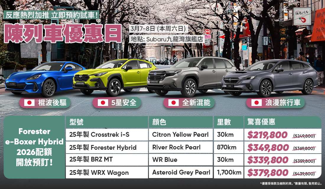 歡迎親臨陳列室,了解SUBARU車款的獨特之處。